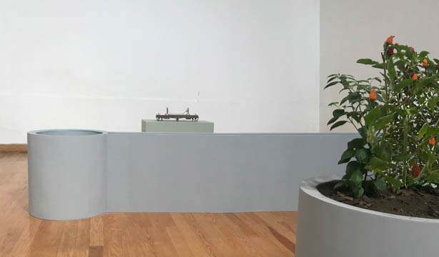 Na mostra, como circuitos hidráulicos, além do biombo-aqueduto, temos outro com água circulante abaixo do circuito celeste e conectado com Desertesejo. Esses circuitos de água corrente nos rementem ao sistema asteca de canais remanescentes na Cidade do México.