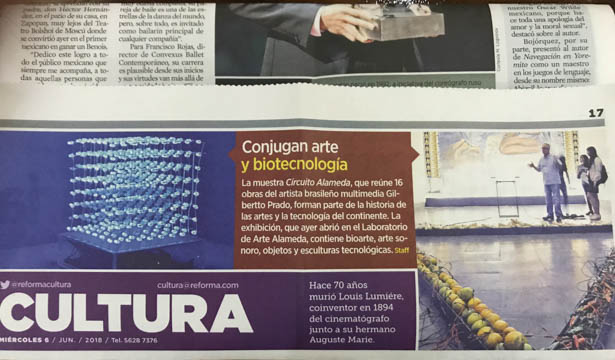 Exposição individual de Gilbertto Prado e do Grupo Poéticas Digitais realizada no Laboratório Arte Alameda, México de 5 de junho a 5 de agosto de 2018. A mostra Circuito Alameda consta de novas obras site specific criadas para o LAA (antigo convento de San Diego, sec. XVI) em diálogo com outros trabalhos pessoais do artista e com o Grupo, num total de 17 obras em 5 salas distintas que vinculam a relação arte, tecnologia e natureza. A idéia foi a de estabelecer diversos circuitos com/entre os visitantes, a Praça Central Alameda, frutos e plantas in natura (milho, pimenta e laranja), os processos de hibridização, colonização e os choques culturais. A exposição teve a curadoria de Jorge La Ferla.