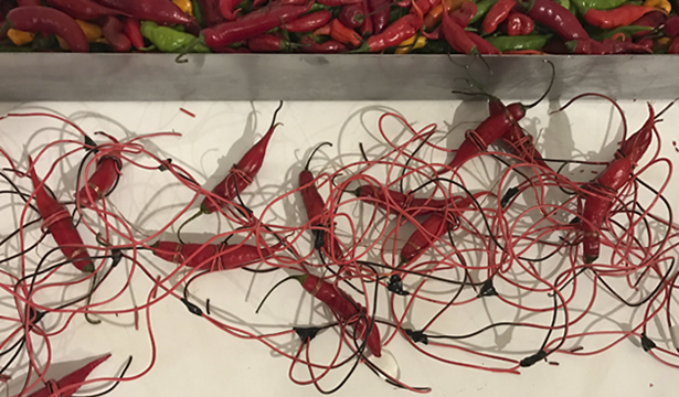 Série de máquinas de choque aqui associadas aos Toqueros e suas caixas de choque, atividade tradicional no centro histórico da Cidade do México. Popularmente utilizados para aliviar o stress e a embriaguez - ou testar a valentia -, através dos quais as pessoas se auto-infligem correntes elétricas. Dínamos e baterias de laranjas, pimentas e milhos são aqui associados para nos lembrar dos choques culturais e processos da colonização portuguesa e hispânica. Esses aparelhos são fabricados para uma experiência artística e sensorial junto aos visitantes da exposição.