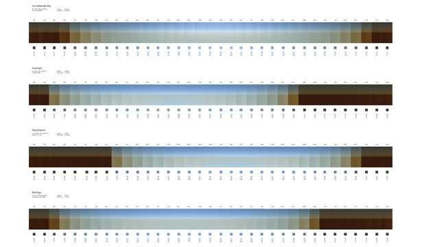 Caixa dos horizontes possíveis consiste em um cubo, espelhado verticalmente sobre o Espaço Quadrado do Paço das Artes, traçando uma fenda de luz que corat o espaço ao meio, de modo a configurar quatro horizontes suspensos na altura do olhar. O espectador pode se deslocar em torno dessa caixa fazedora de horizontes nos levando para dentro e para fora do espaço expositivo, nos aproximando dos quatro pontos cardeais, onde a distância é percebida como uma linha que confunde o céu e o mar.