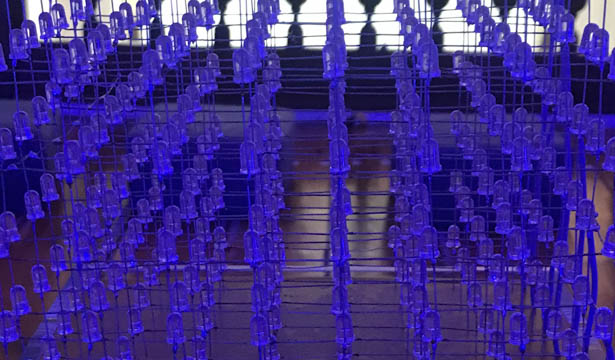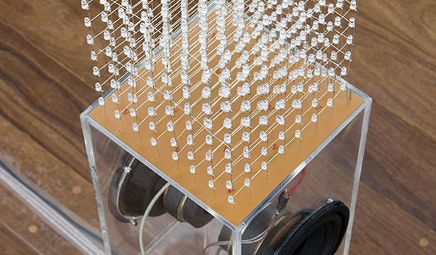 As luzes dos Leds do cubo não estão no espectro visível de nossa visão mas poderão ser vistas através das câmeras dos celulares. Desta forma o visitante passará a ‘enxergar’ toda uma nuvem de movimentações, que representam o fluxo de passantes nas áreas capturadas pela câmera remotamente e transmitidas em tempo real.