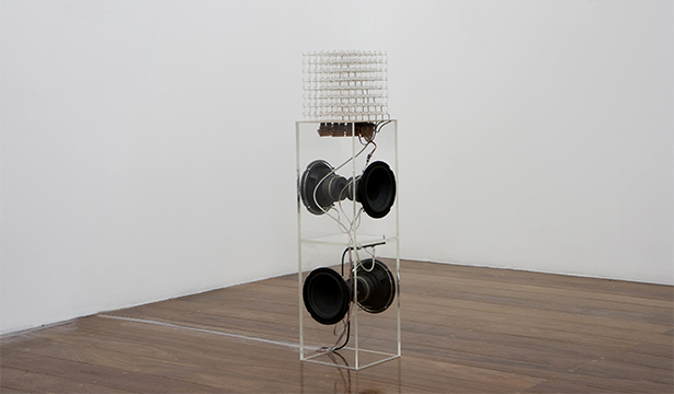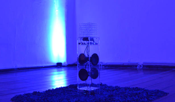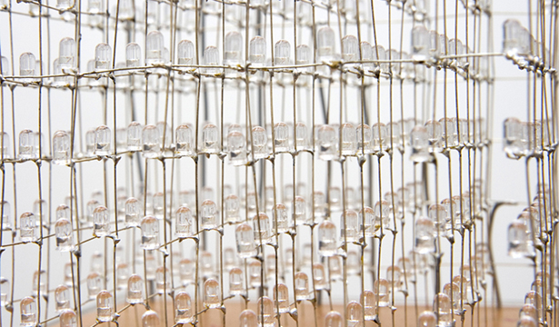 Temos no espaço expositivo um cubo de Leds transparentes (8X8X8) que emitem luz infravermelha, e caixas de som, que respondem simultaneamente ao fluxo de passantes, em um outro lugar, região de casas de luz vermelha, como atrator, dissimulando um velado jogo de sedução. A movimentação do fluxo dos passantes na área da luz vermelha será capturada por uma câmera localizada no alto de um edifício, registrando uma visão de topo da área, uma rede, uma malha, que esquadrinha um espaço e um fluxo de passantes. As informações adquiridas alimentarão simultaneamente o sistema instalado na exposição. Este sistema é composto por um cubo de Leds que emitem luz infravermelha; uma placa arduíno que será a responsável para a relação entre dados analógicos e digitais; e dois computadores que processarão e gerenciarão os dados. Desta forma, os fluxos captados pela câmera externa irão acendendo e apagando as luzes do cubo da exposição, gerando movimentos e fluxos luminosos. Este processo será dinâmico, simultâneo e em tempo real. Enquanto isso, no espaço expositivo nada se vê ou escuta, mas o corpo percebe essas outras frequências. As lâmpadas aparentemente continuam transparentes e sem brilho e as caixas de som sem emitirem sons audíveis aos humanos.