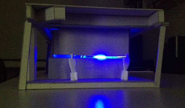 “Caixa dos horizontes possíveis" trabalha a relação do sujeito e a formação de espaços-luz em tempo real. O trabalho consiste em compor um cubo, erguendo quatro paredes num espelhamento vertical do quadrado original (Espaço Quadrado do Paço das Artes), mas preservando uma fenda que corta o cubo ao meio, de modo a configurar uma estrutura antigravitacional, e criando quatro horizontes suspensos na altura do olhar. O espectador pode se deslocar 3600 em torno dessa caixa-umbigo fazedora de horizontes nos levando para dentro e fora, nos aproximando dos quatro pontos cardeais, onde a distância é percebida como uma linha que confunde o céu e o mar.